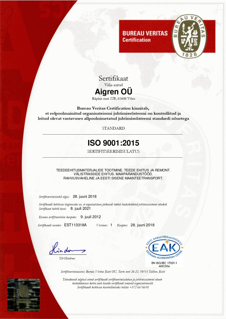- Ettevõttele kohaldatavate nõuete järgimine.